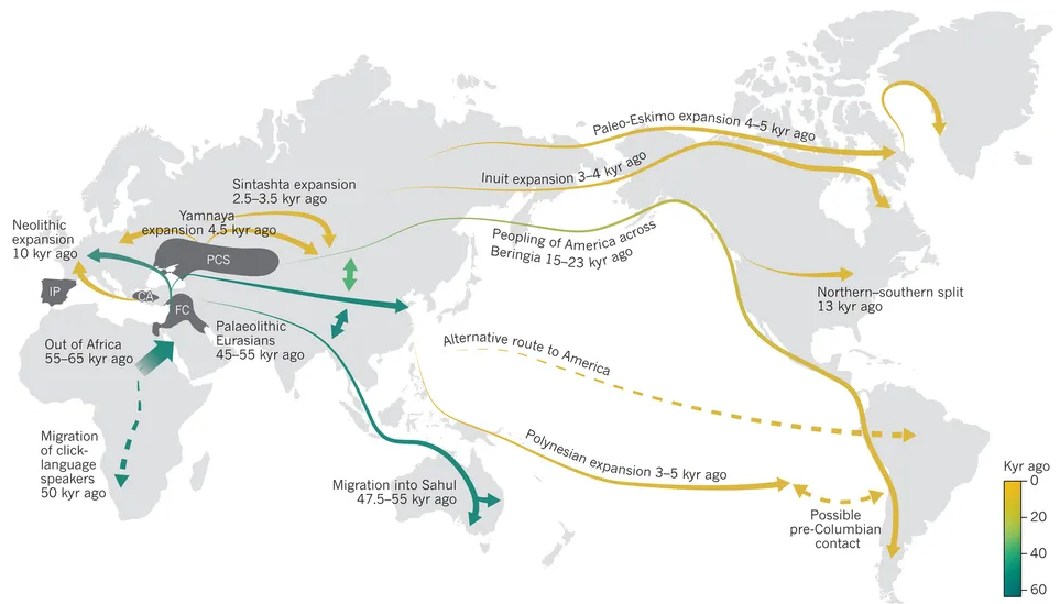 [Collection] 최근 고고학 및 유전학 연구에 따르면, 만년전 인류의 인구 분포는 다음과 같았습니다: