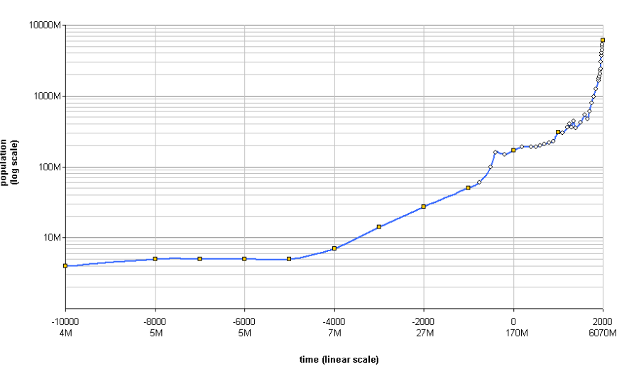 | 기원전 10000년 | 500만 명 이하 | 농업 혁명 시작 |
