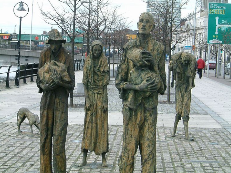 감자마름병이 3년 연속(1845-1847) 아일랜드를 강타하면서 인구는 급격히 감소했습니다. 영국 통치 하에 있던 아일랜드는 식량 위기 속에서도 영국으로 식량을 수출해야 했고, 영국 정부의 구호 정책은 제한적이었습니다.