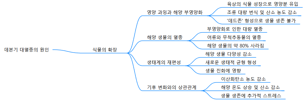 최신 연구 결과에 따르면, 데본기 대멸종의 원인으로 지목되는 해양 무산소화는 다음과 같은 요인들이 복합적으로 작용한 결과입니다: